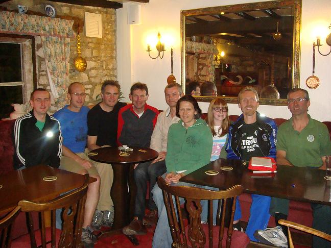 We finished the fifth leg about 6:00am on the edge of Stroud at The Fifth Dimension Health & Fitness Club where we had a brief respite planned. At that point we were soaking wet and tired from having run 57.5 miles, but the sun had been up a a couple hours, the rain was abating, and we were over halfway. Spirits were high for Martin, myself, and the support runners - but the break lasted about 30 minutes (way too long for me) so my body temperature plummeted and I was shaking from hypothermia as I began the sixth leg...